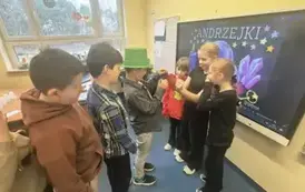 W klasach 1–3 odbyły się radosne Andrzejki pełne tradycyjnych wróżb i dobrej zabawy. Uczniowie lali wosk przez klucz, przekłuwali papierowe serduszka, ustawiali buty do drzwi oraz brali udział w wielu innych zabawach andrzejkowych.