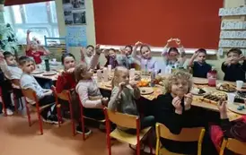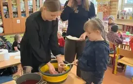 Nie zabrakło również pysznego poczęstunku, który dodał wszystkim energii do dalszej zabawy. Dzieci świetnie się bawiły, poznając andrzejkowe tradycje i spędzając czas w miłej, klasowej atmosferze.