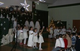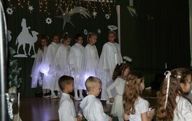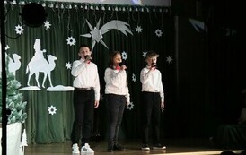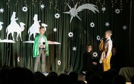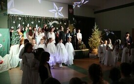 Dnia 22 grudnia podczas szkolnego przedstawienia bożonarodzeniowego w holu naszej szkoły zabłysła Gwiazda, która jako motyw przewodni tegorocznych jasełek zaprowadziła Trzech Króli oraz małego Alvino do Dzieciątka Jezus. Na scenie zaprezentowano różne formy aktywności. Był teatr, taniec, muzyka, oraz piękna scenografia, dzięki czemu wszyscy poczuliśmy magię nadchodzących świąt. Serdecznie dziękujemy naszym młodym aktorom za emocje, których nam dostarczyli oraz ich Rodzicom, którzy zadbali o piękne stroje i rekwizyty swoich dzieci.