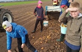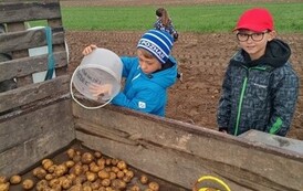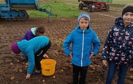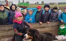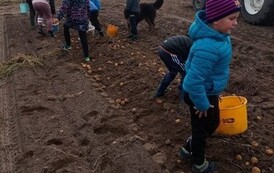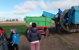 Gospodarze pokazali, jak się kopie i zbiera ziemniaki. Wszyscy z entuzjazmem podjęli pracę. W mgnieniu oka zapełniały się wiaderka za wiaderkiem. Było to dla wielu nowe doświadczenie i duża frajda. Mieli też okazję przejechać się na kombajnie ziemniaczanym i poznać jego działanie.