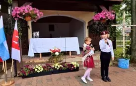 Przy pomniku upamiętniającym wydarzenie, w imieniu społeczności szkolnej, wiązankę kwiatów złożyli uczniowie: Jakub Mulka, Franciszek Waliński, Wiktor Bartoszewicz.