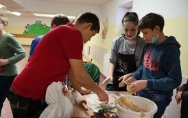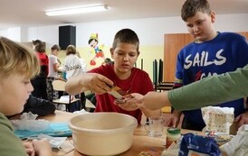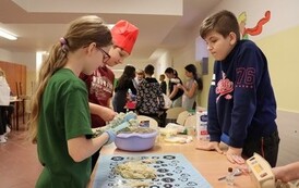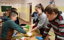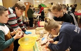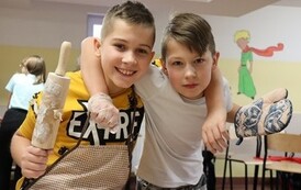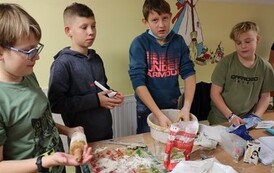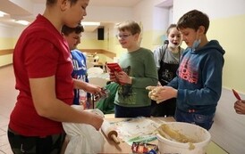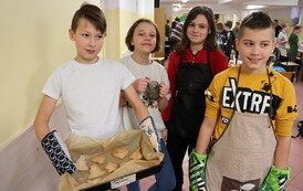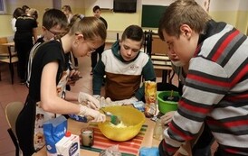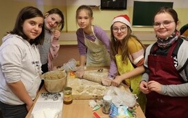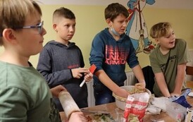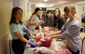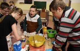 Niektóre grupy były naprawdę świetnie zorganizowane, ponieważ wcześniej przydzieliły każdemu konkretne zadanie, w związku z czym szybko przygotowały swoje ciasto i wspomogły pracę innych grup. Uważamy, że czas spędzony wraz z kolegami i wychowawcami został świetnie wykorzystany i przy okazji też bardzo dobrze się bawiliśmy. Wprawdzie nie obyło się bez wypadków w postaci złamanej łopatki, zafarbowania ubrania czy chwilowego wkradnięcia się chaosu, lecz wszyscy sprostaliśmy zadaniu. Praca szła nam tak dobrze, że kolejka blach do piekarnika się nie zmniejszała, i gdyby nie nasza zgrana współpraca, efekty nie byłyby aż tak udane.