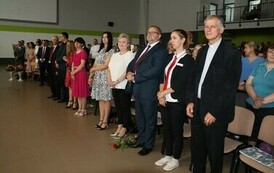 Nie tylko ósmoklasiści żegnali się ze szkołą. Rok szkolny 2022/2023 był ostatnim rokiem wieloletniej pracy Pani Barbary Grześkowiak - nauczycielki religii, Pani Joanny Stachowiak - nauczycielki edukacji wczesnoszkolnej, Pani Anny Suszek - bibliotekarki i nauczycielki języka polskiego, Pani Renaty Szramy - pedagoga szkolnego oraz nauczycielki plastyki i muzyki, Pani Lucyny Zaborskiej - Błoch - nauczycielki matematyki i informatyki.