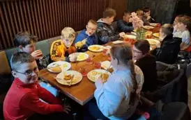 Po zwiedzeniu największych atrakcji miasta dzieci miały możliwość zakupienia toruńskich pierników i pamiątek. Ostatnim punktem wizyty w Toruniu był obiad w karczmie i powrót do autokaru. W drodze powrotnej nasz przewodnik przygotował niespodziankę w postaci figurki psa Filusia, którą wygrał Mikołaj, ponieważ jako pierwszy odpowiedział poprawnie na zadane przez pana Wojtka pytanie dotyczące atrakcji Torunia.