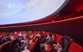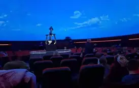 Następnie udaliśmy się na seans do Planetarium. Wszyscy z zapartym tchem oglądaliśmy film pt. „Kosmiczne ziemniaki”. Dostarczył on wielu wrażeń, a także pogłębił wiedzę o planetach i gwiazdach.