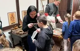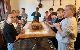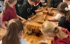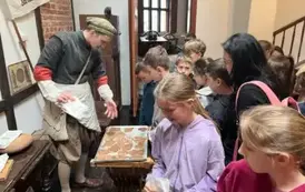 Pierwszym punktem wycieczki były warsztaty piernikarskie w „Piernikarni Starotoruńskiej”, gdzie piernikarze uchylili rąbka tajemnicy wyrobu tego niezwykłego specjału. Podczas warsztatów dzieci własnoręcznie wykonały swój piernik według receptury starych mistrzów. Uczniowie dowiedzieli się również jakie były dawne tradycje piernikarskie, poznali legendy związane z toruńskimi specjałami, poczuli zapachy przypraw korzennych.