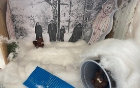 Uczniowie klasy 4b pokochali bohaterów swojej lektury, dlatego z entuzjazmem przystąpili do tworzenia własnej wizji świata, do którego trafili: Piotr, Edmund, Zuzanna i Łucja. Aż trudno uwierzyć, że zimowa Narnia powstała w ... kartonowych pudełkach